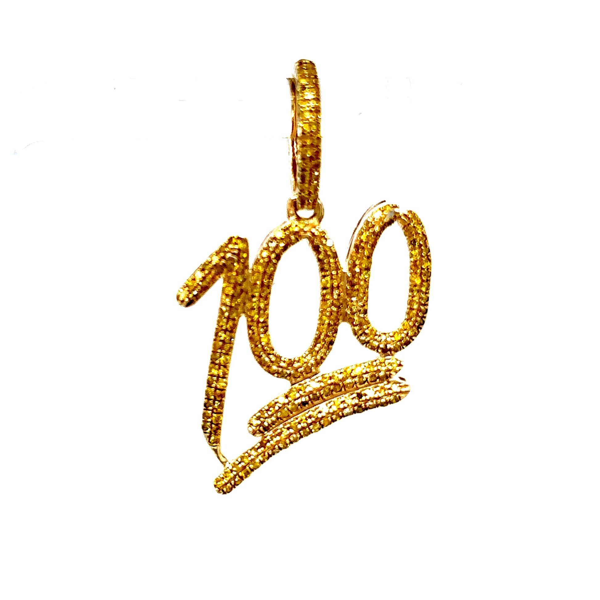 Solid 10k Yellow Gold Yellow Diamond 100 Emoji Pendant
