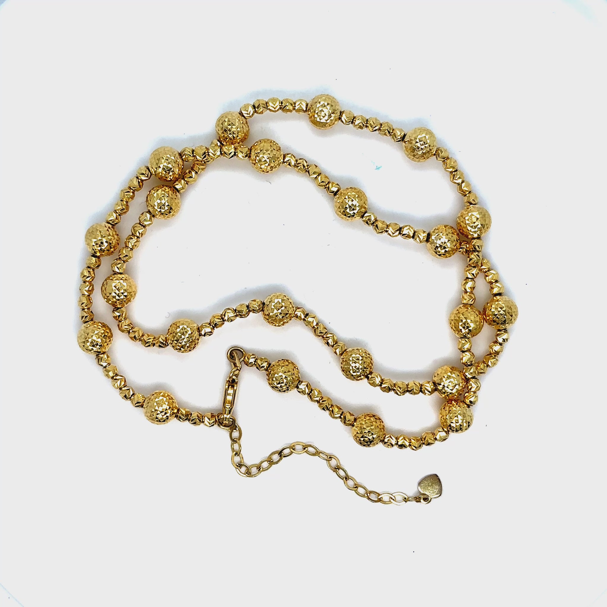 Solid 14 Karat Yellow Gold Beaded Necklace.