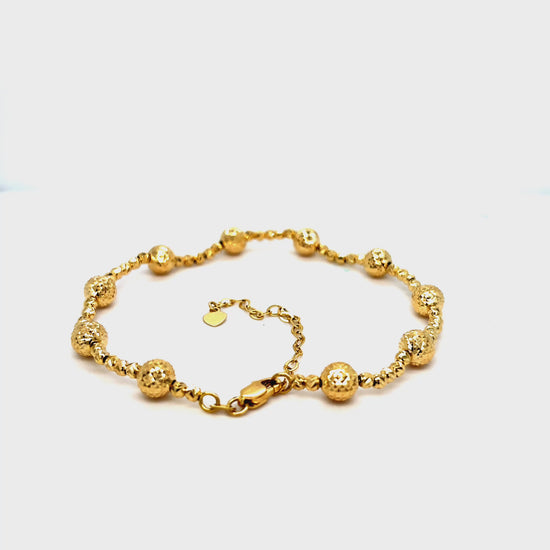 Solid 14 Karat Solid Yellow Gold Diamond Cut Beaded Bracelet.