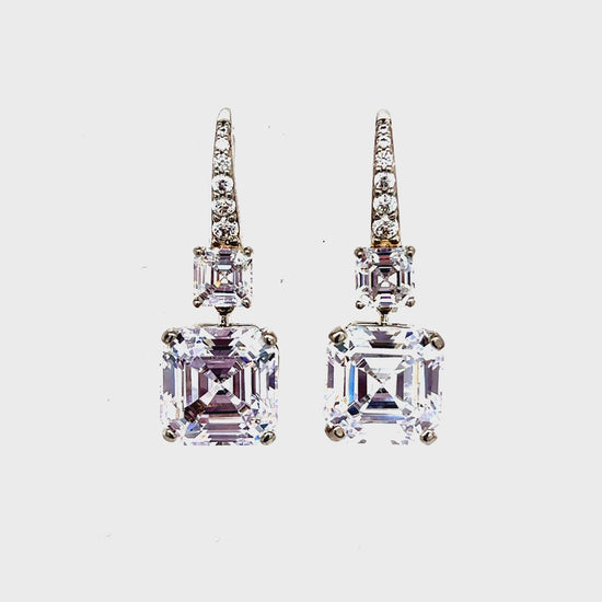 Solid 925 Sterling Silver clear Swarovski Crystal Dangle 2-Tier Earrings.