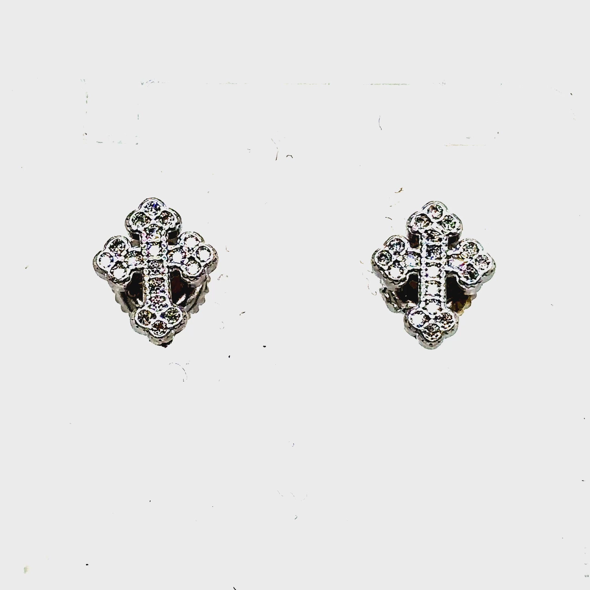 Solid 925 Sterling Silver Round Style prong set Cross Earrings with Round VVS GRA Certified Moissanite Stones.