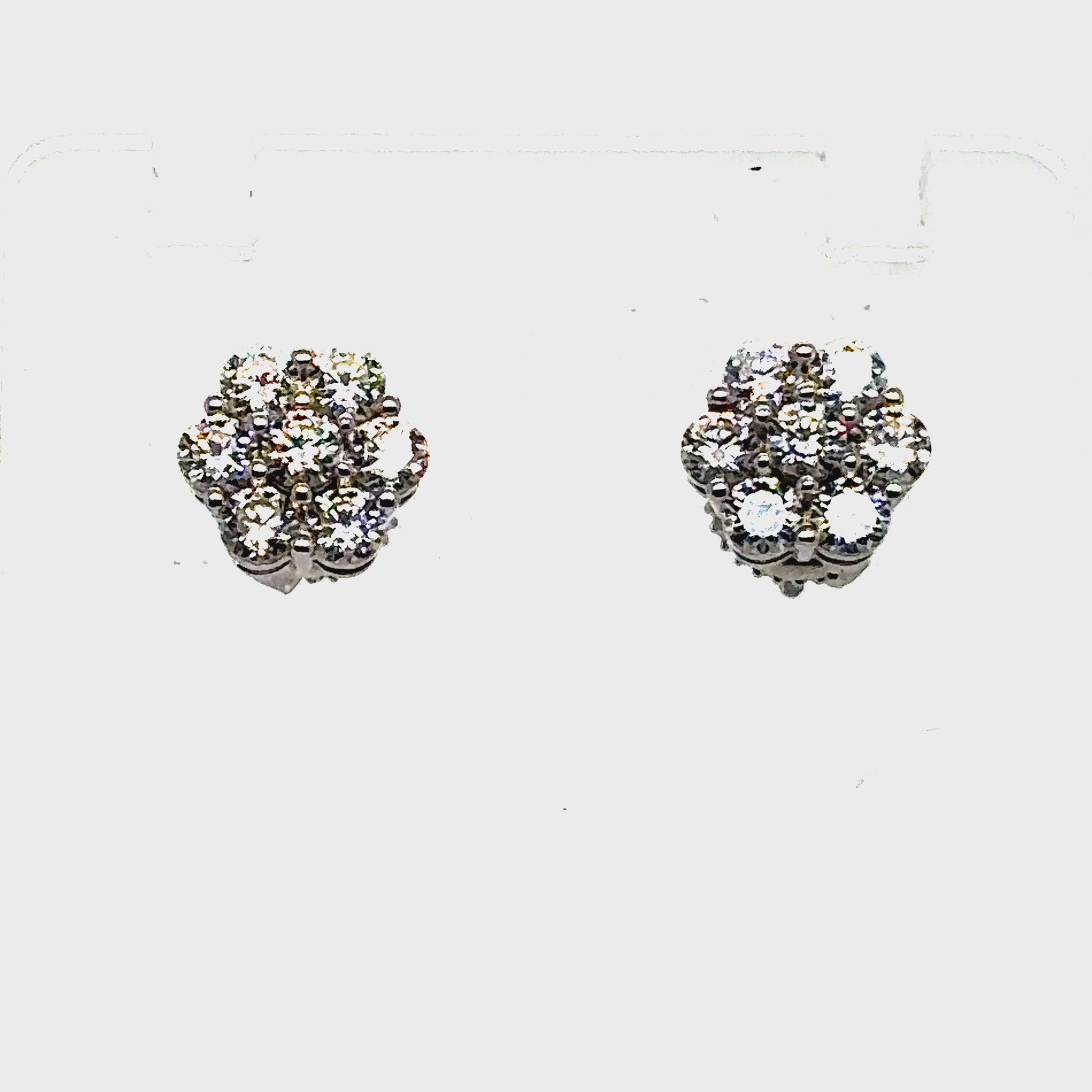 Solid 925 Sterling Silver Flower Style prong set earrings with Round VVS GRA Certified Moissanite stones.