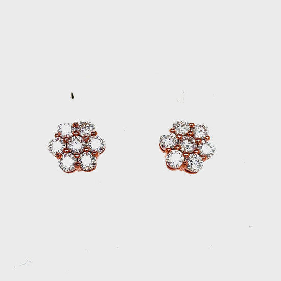 Solid 925 Sterling Silver Flower Style prong set earrings with Round VVS GRA Certified Moissanite stones.