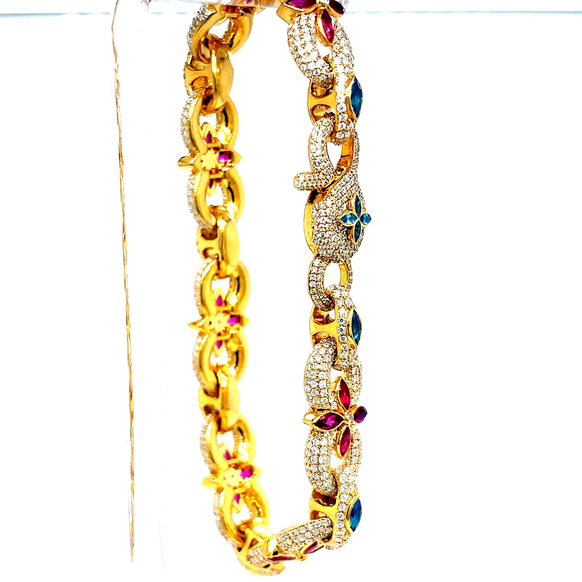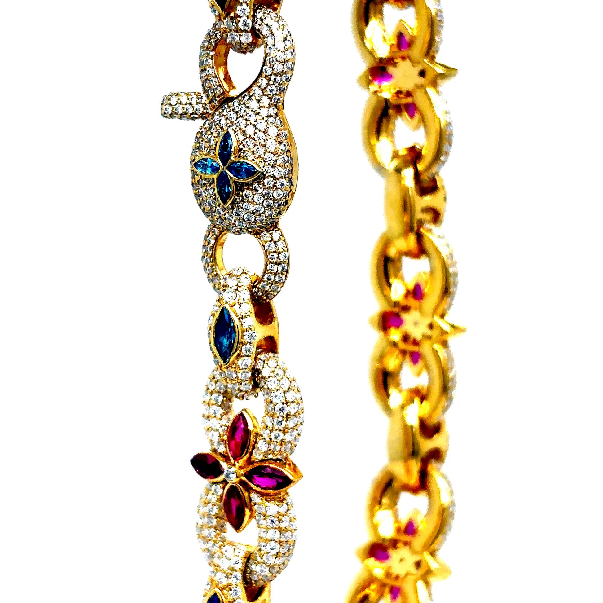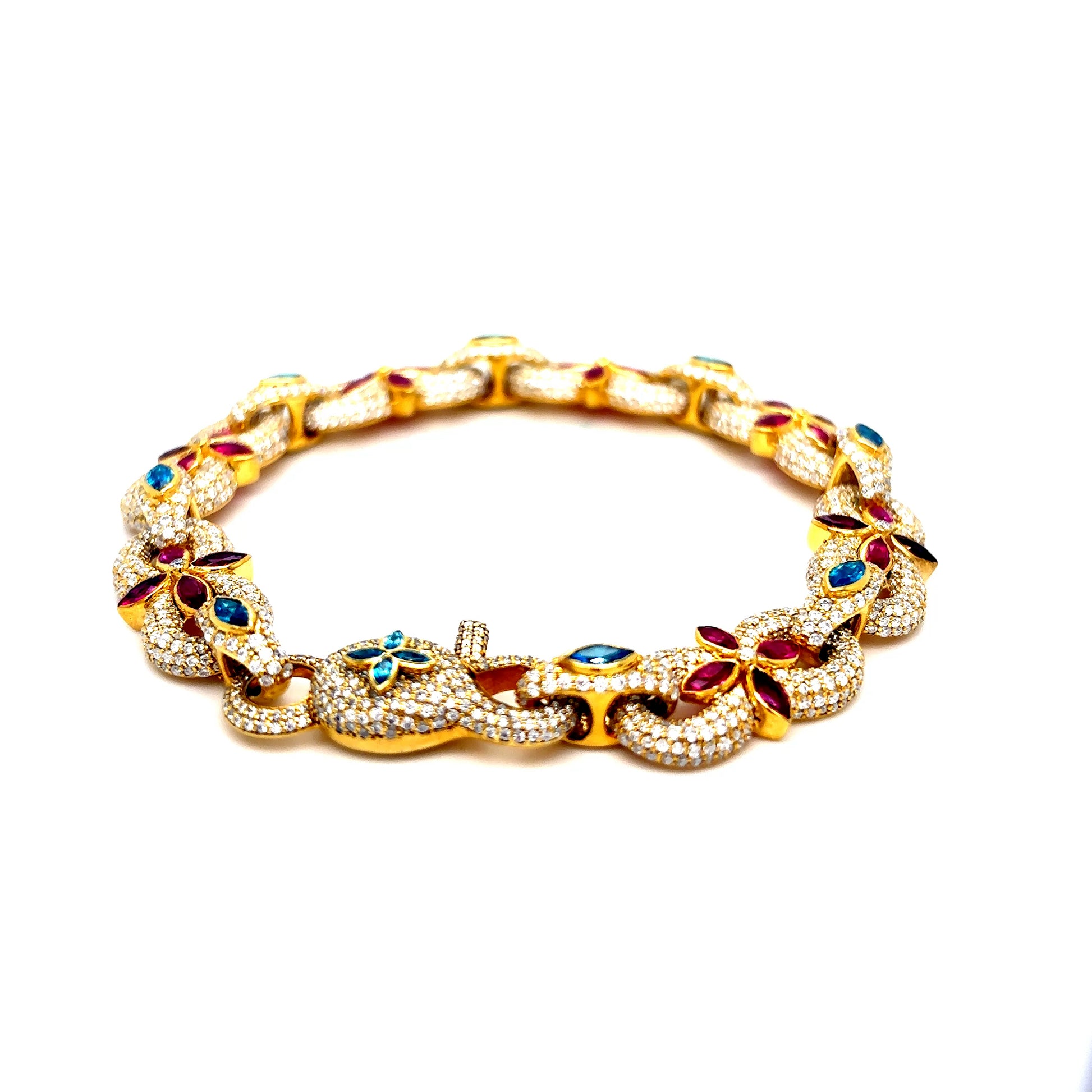 Solid 925 Sterling Silver Infinity Link Bracelet Prong Set with Colored Cubic Zirconia and VVS Moissanite Stones. 18k Gold electroplating.