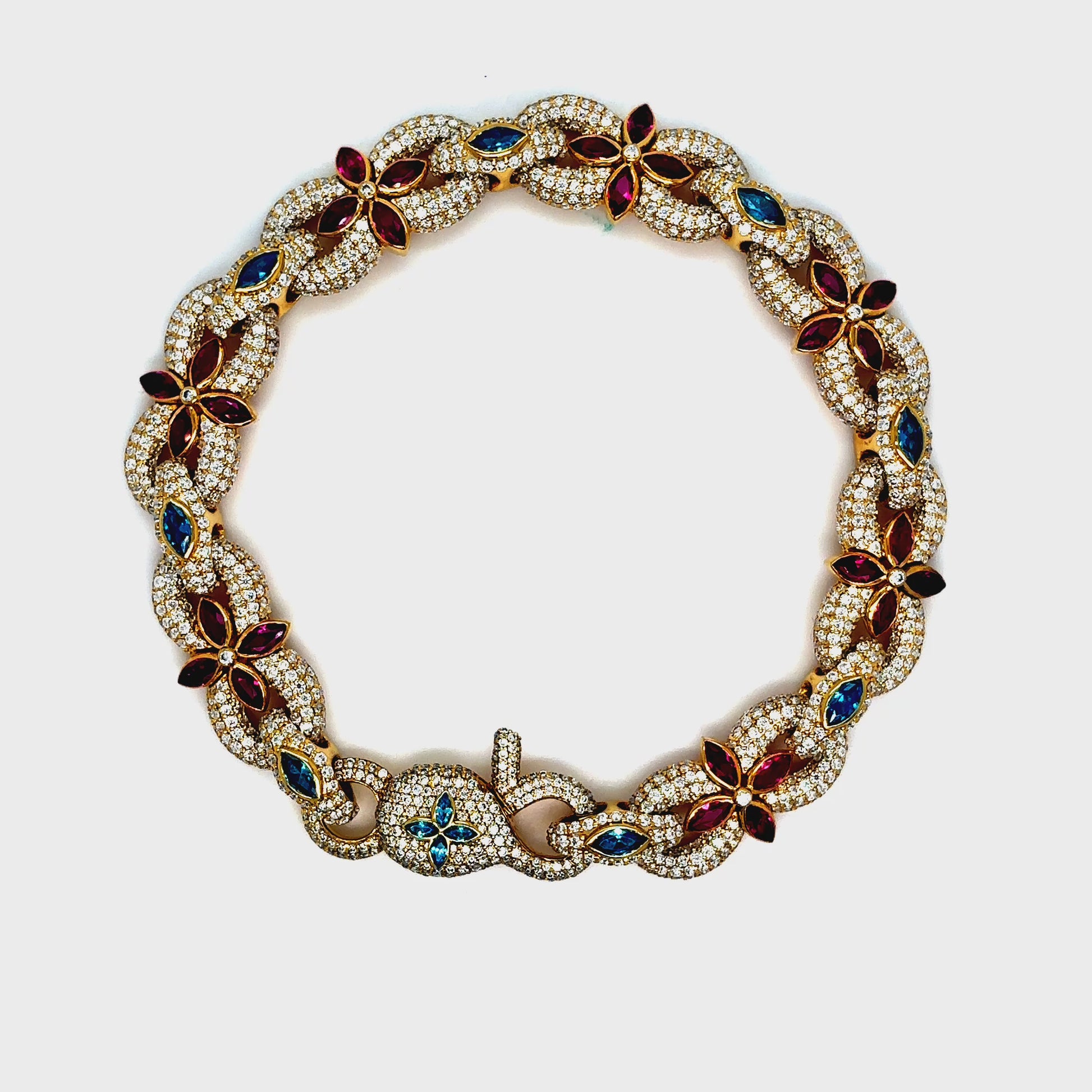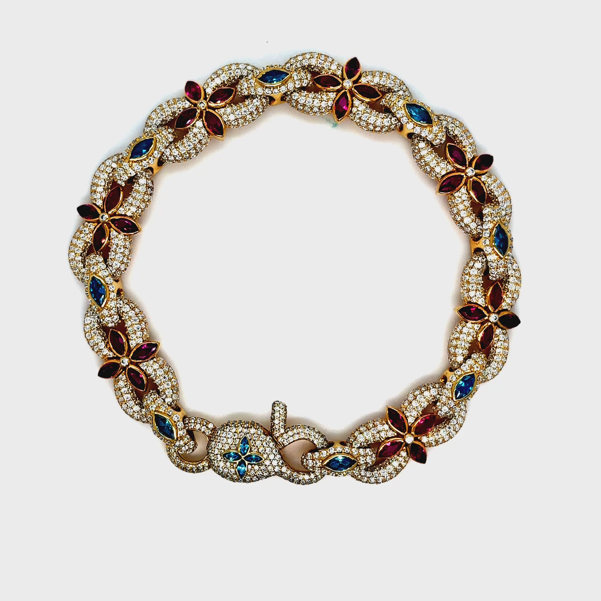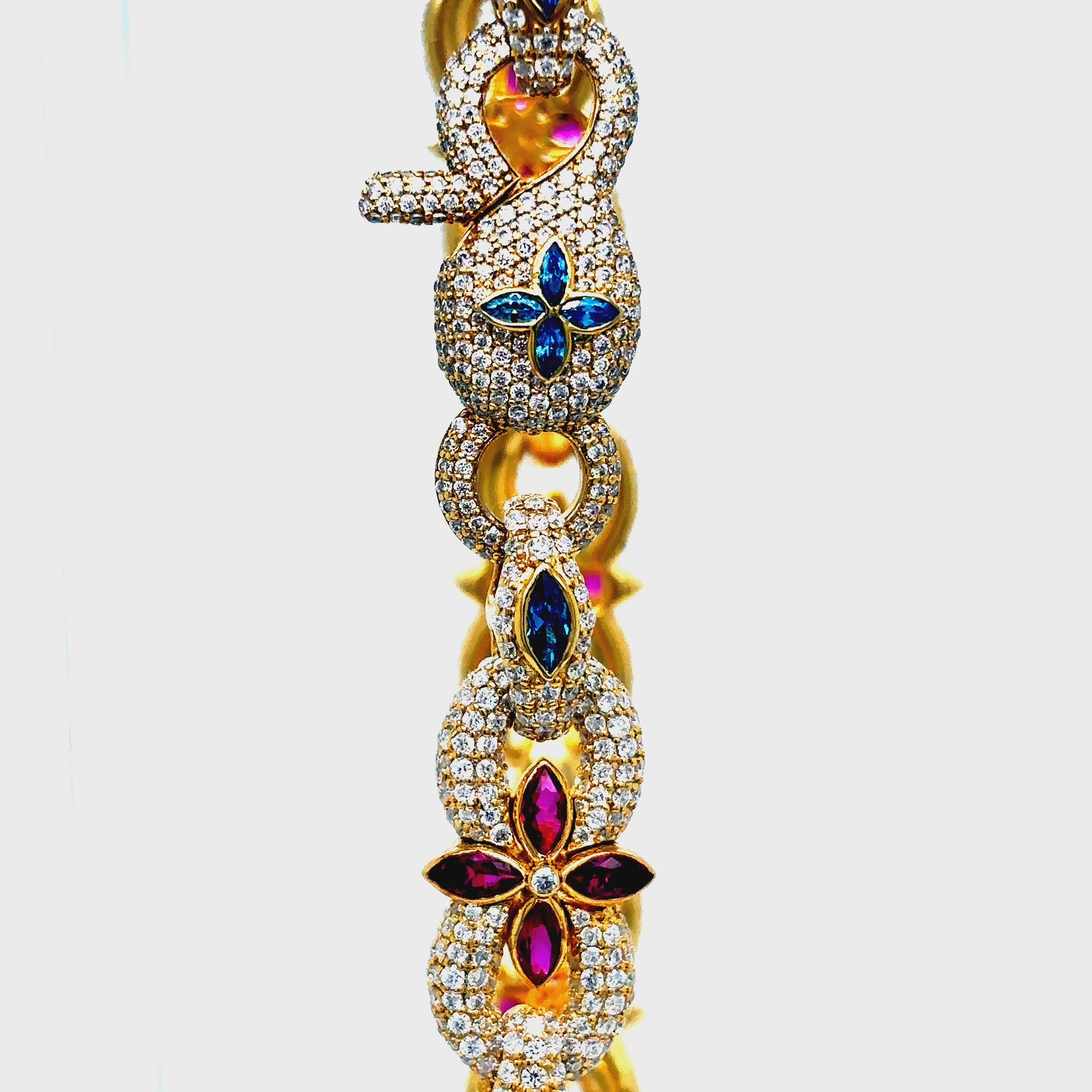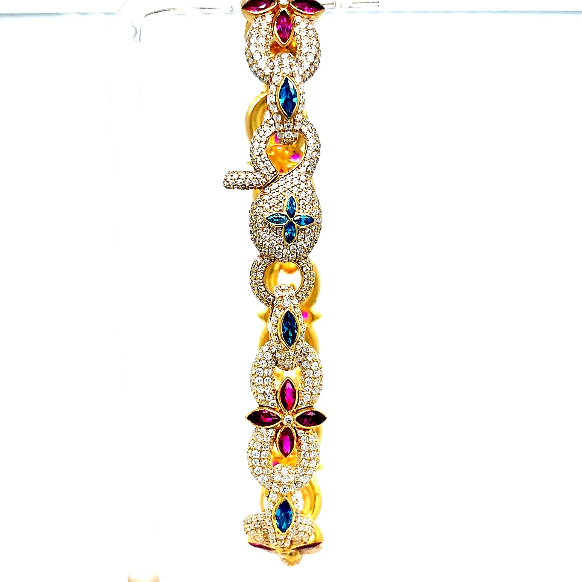 Solid 925 Sterling Silver Infinity Link Bracelet Prong Set with Colored Cubic Zirconia and VVS Moissanite Stones. 18k Gold electroplating.
