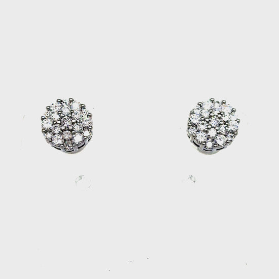 Solid 925 Sterling Silver Circle Style prong set earrings with Round VVS GRA Certified Moissanite stones.