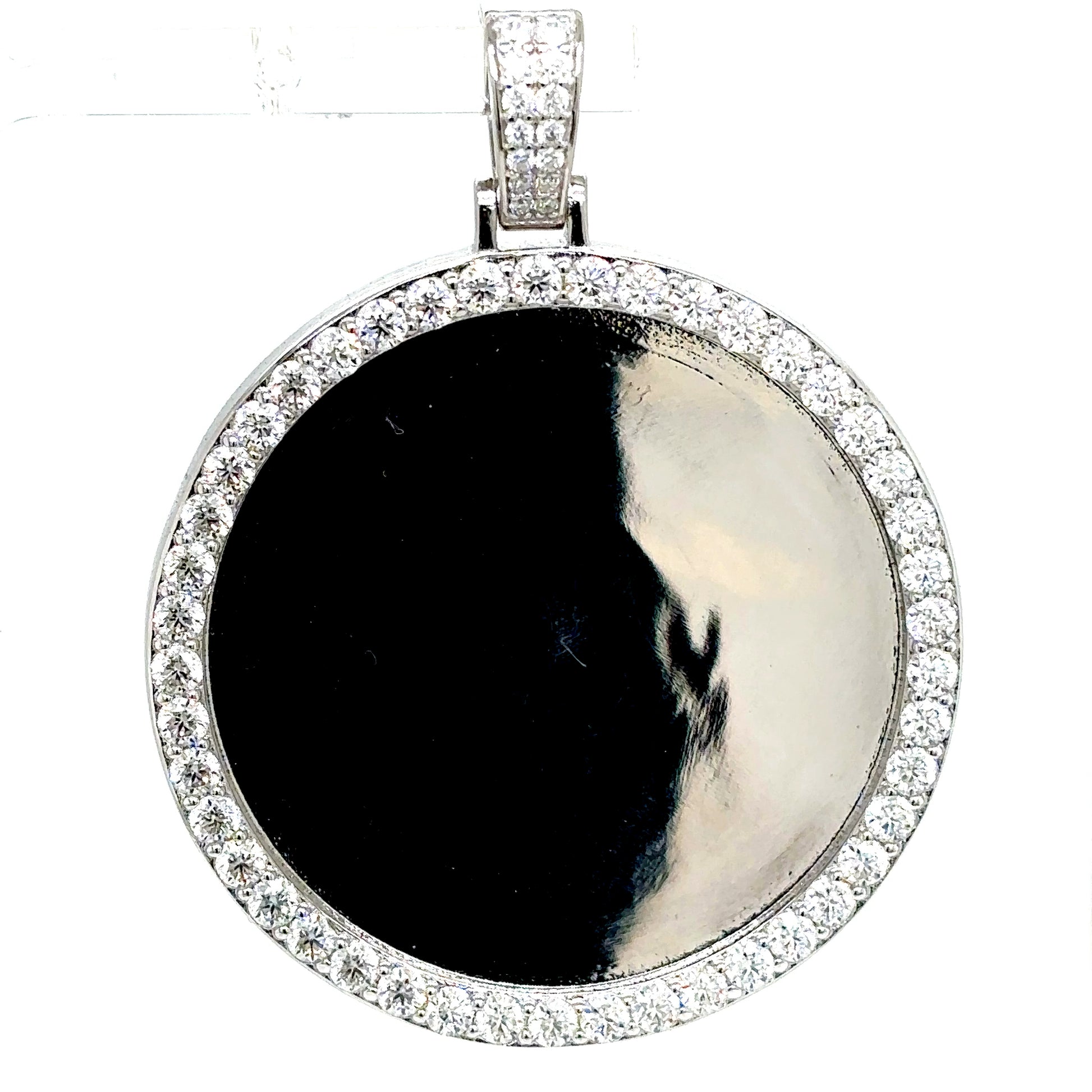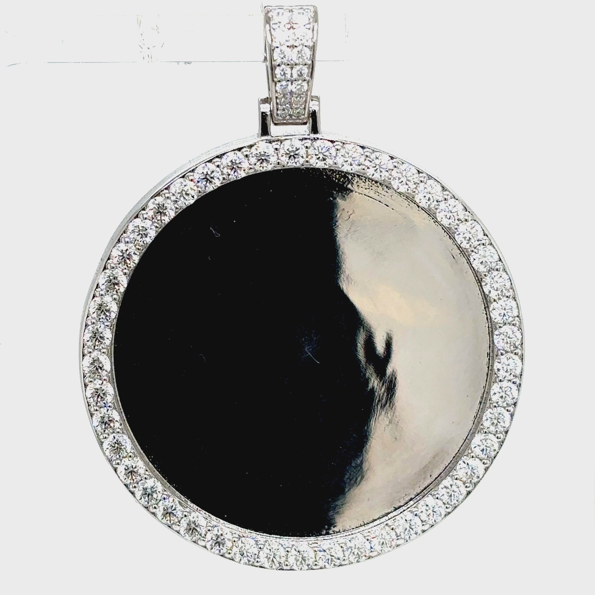 Solid 925 Sterling Silver Memory Photo Pendant with Round VVS Moissanite Stones.