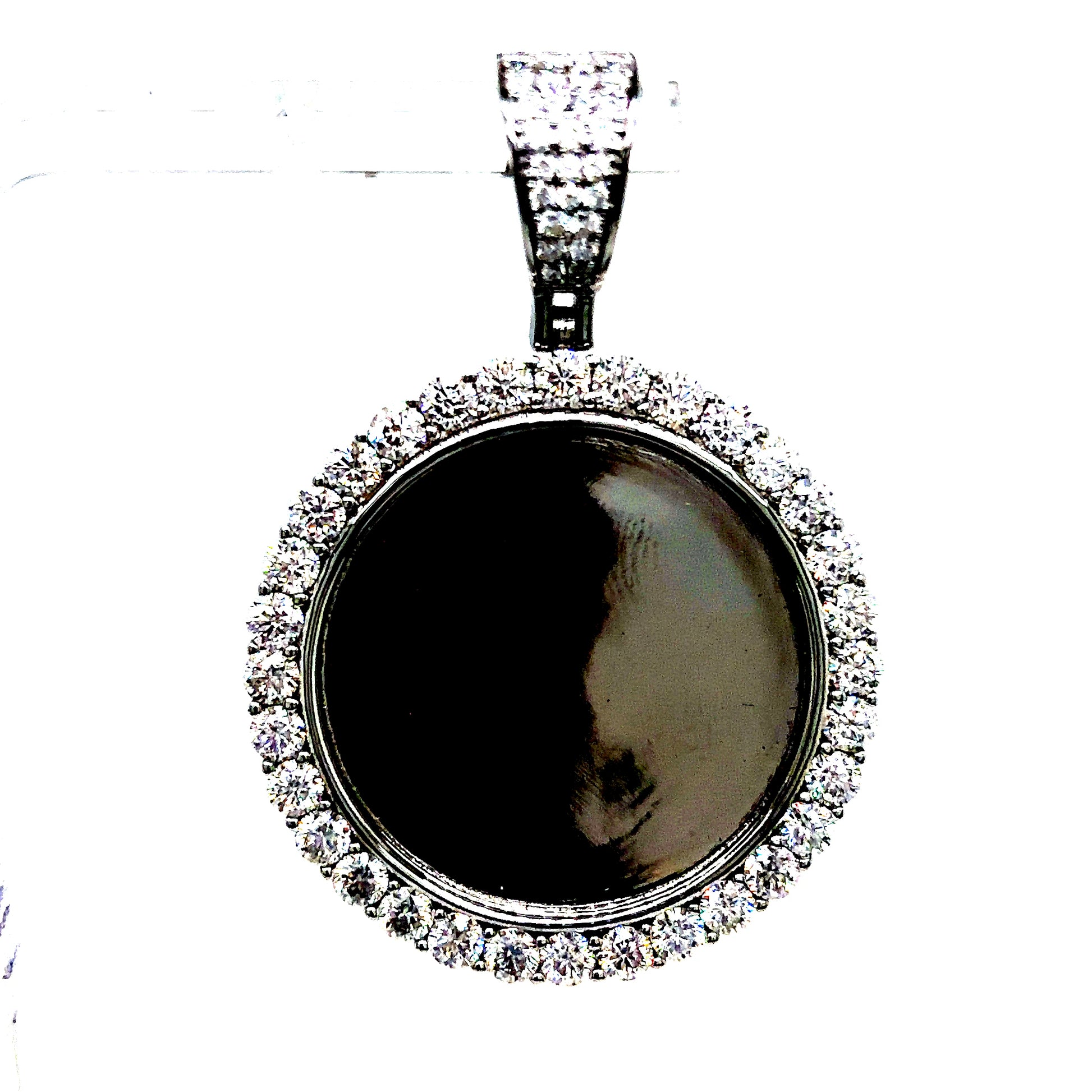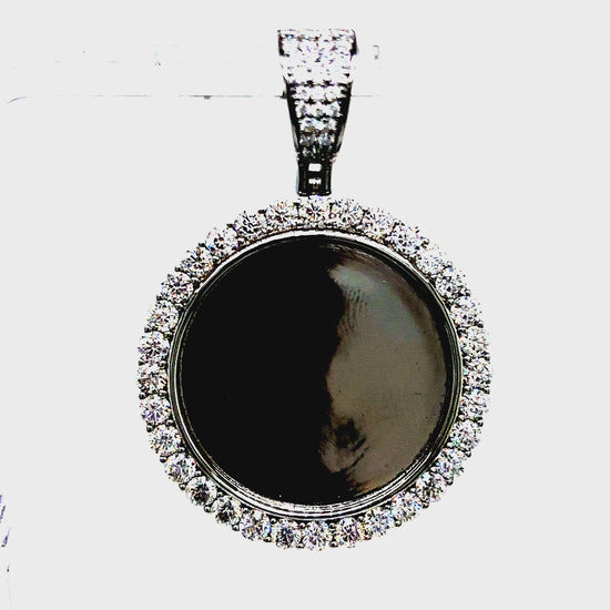 Solid 925 Sterling Silver Memory Photo Pendant with Round VVS Moissanite Stones.