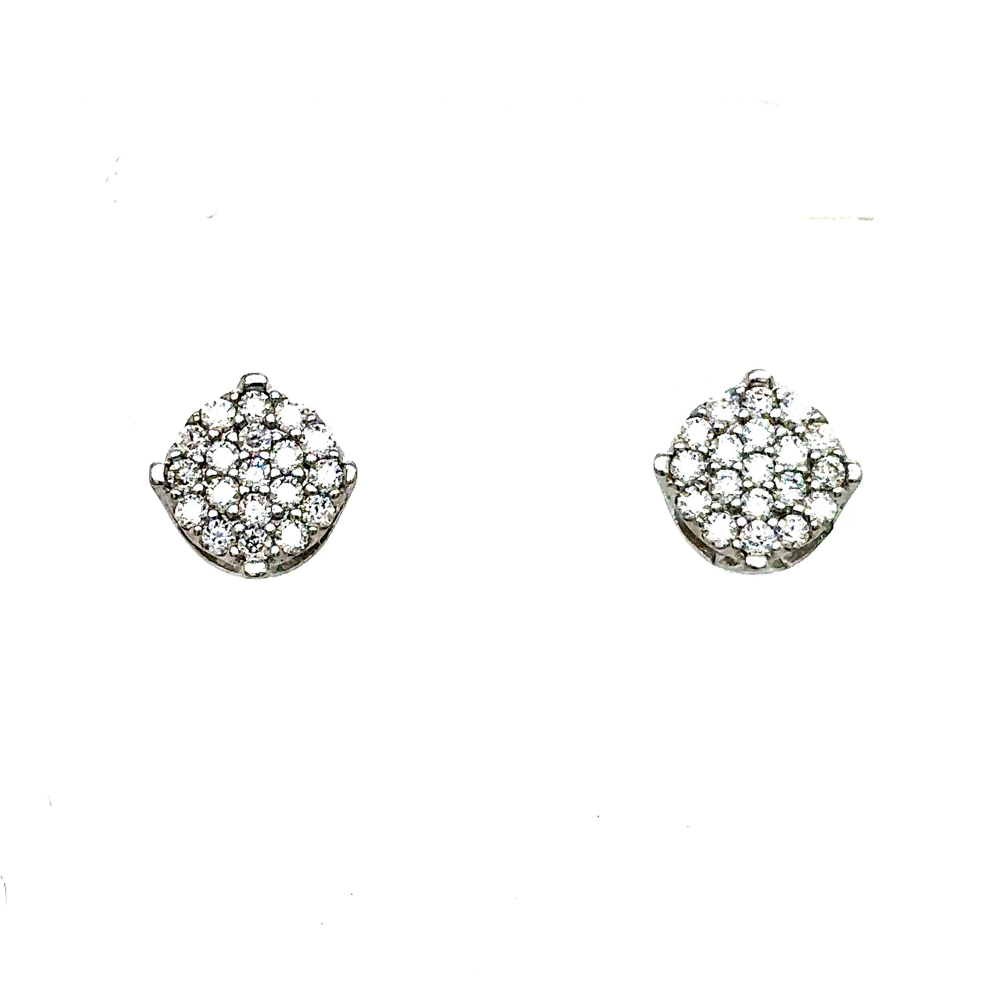 Solid 925 Sterling Silver Round Style prong set earrings with Round VVS GRA Certified Moissanite stones.