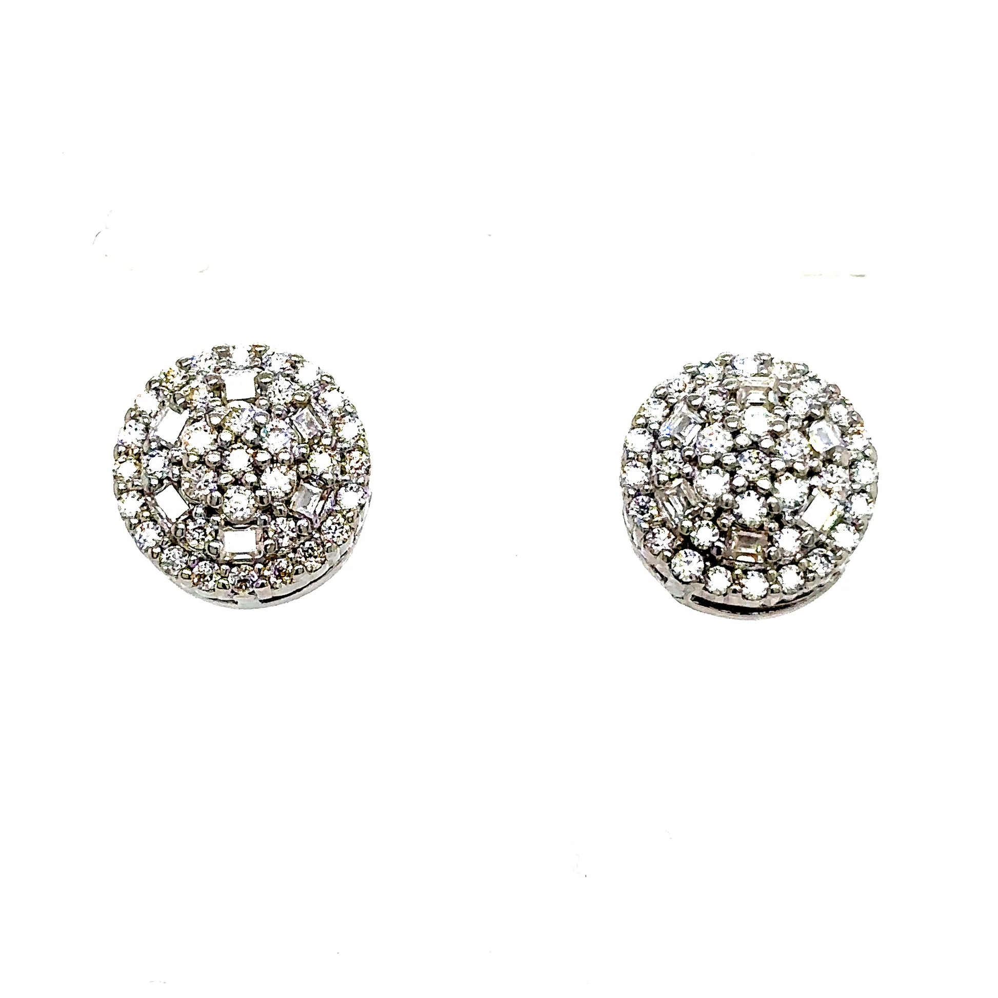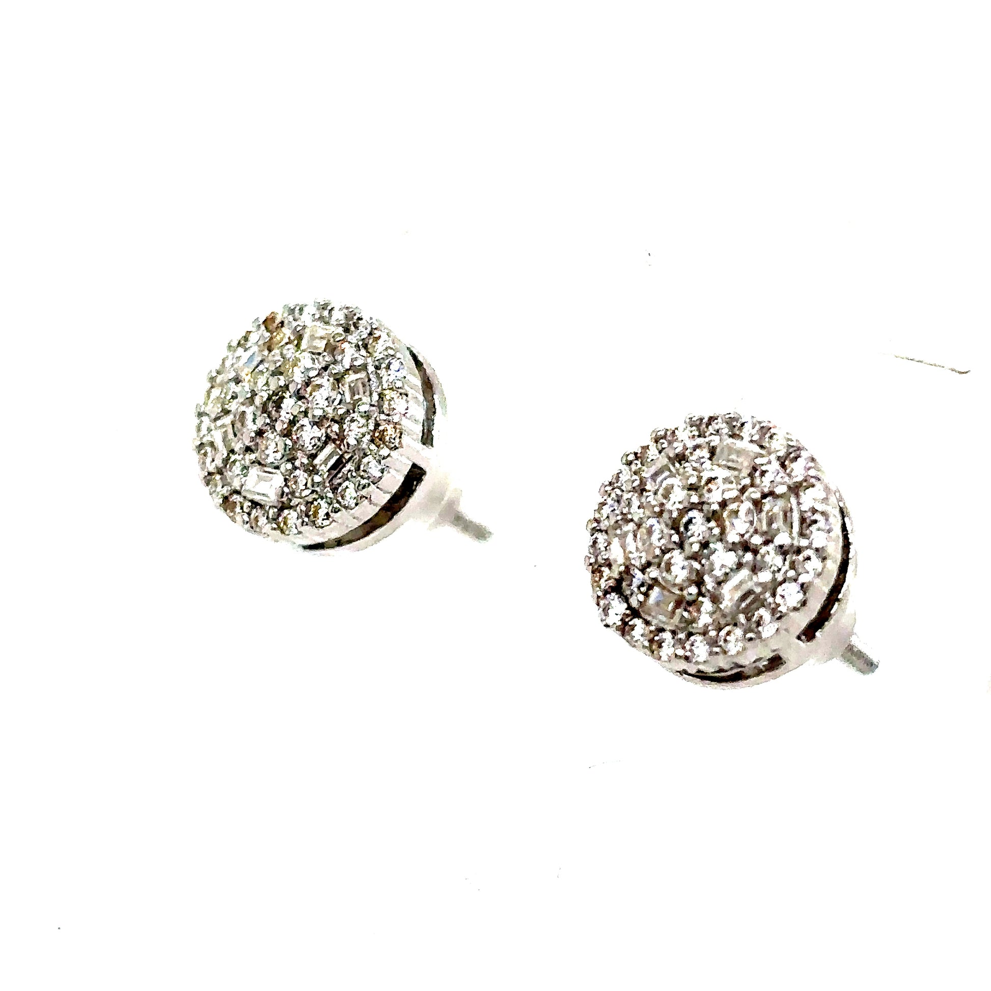 Solid 925 Sterling Silver Round Style prong set earrings with Round VVS GRA Certified Moissanite stones.