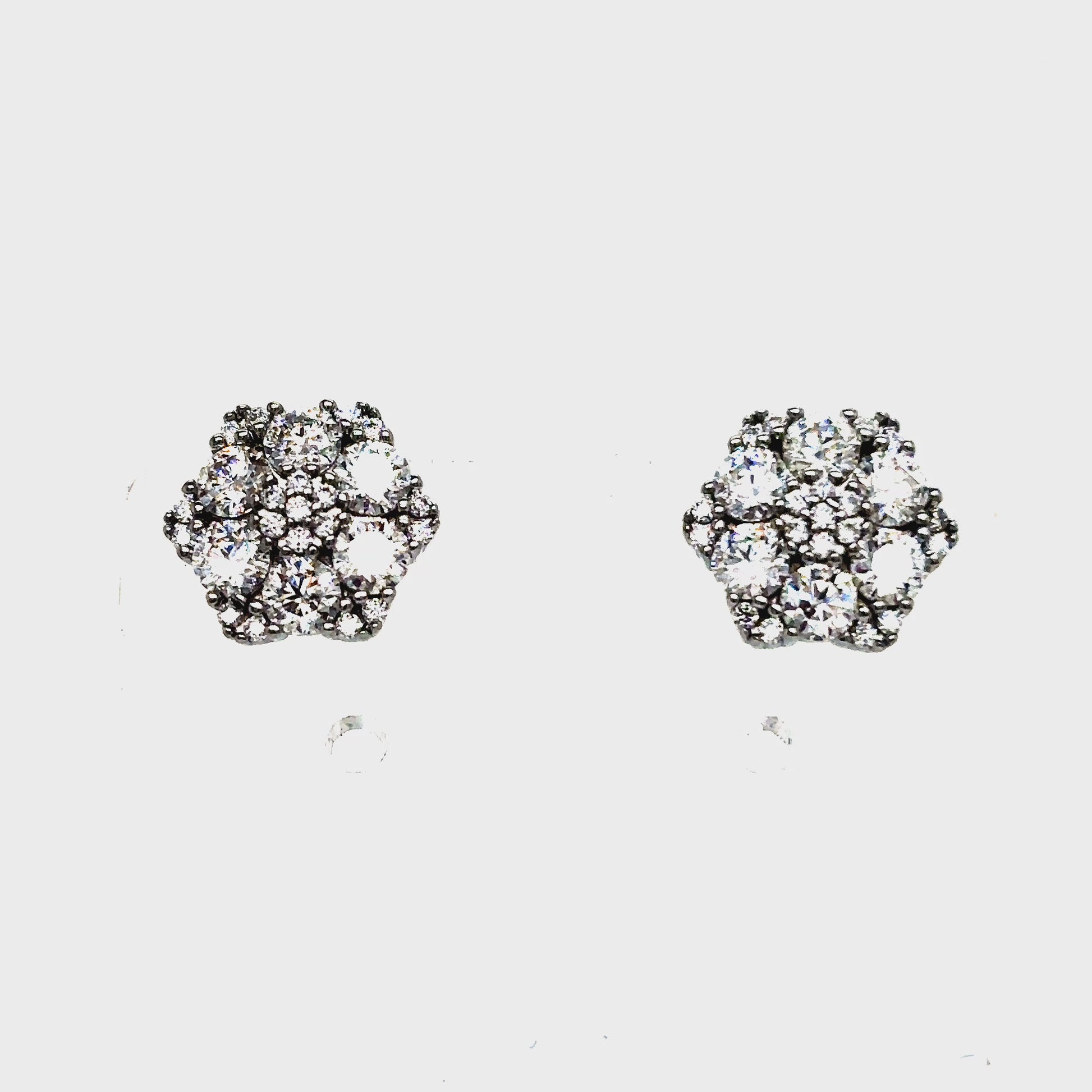 Solid 925 Sterling Silver Large Flower Snowflake Style prong set earrings with Round VVS GRA Certified Moissanite stones.