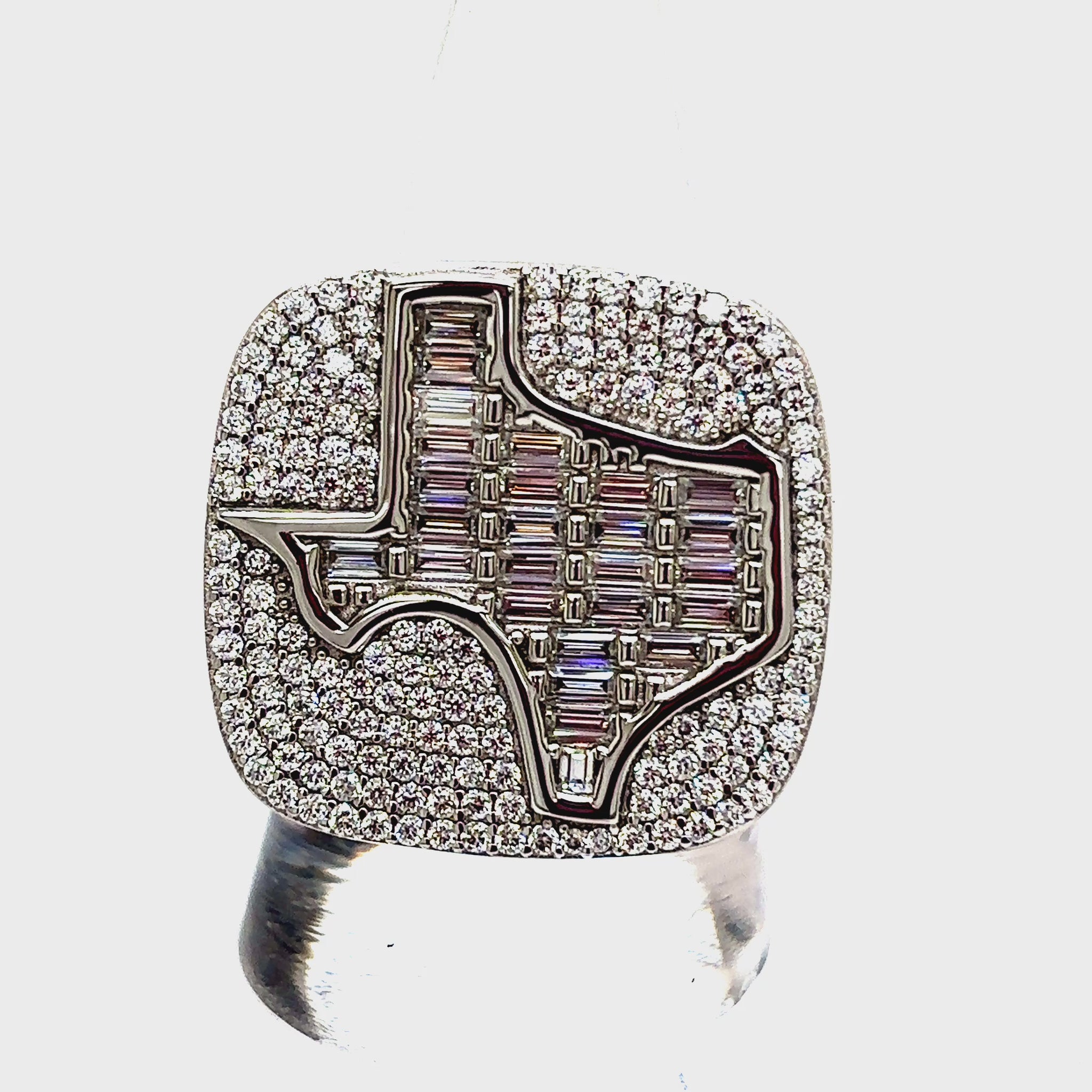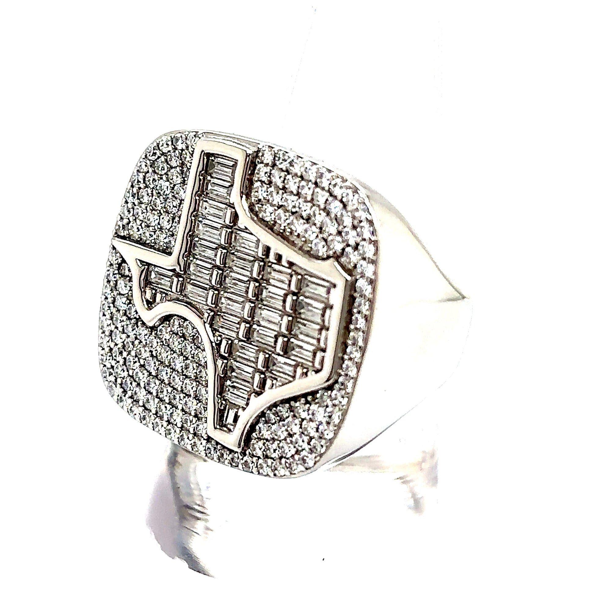 Solid 925 Sterling Silver Texas Champion Style Ring with VVS Moissanite Stones.