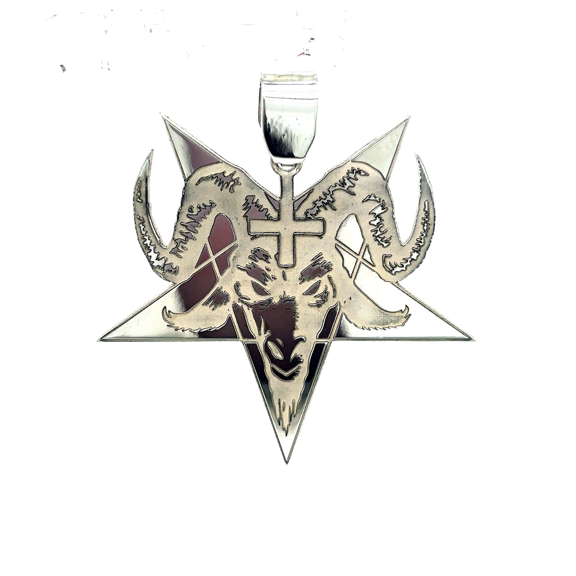 Solid 925 Sterling Silver Handcrafted Pentagram goat Head Pendant
